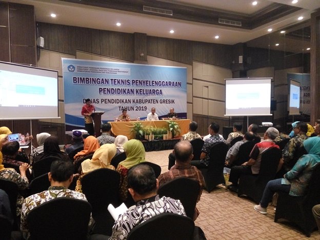 Direktorat Pembinaan Pendidikan Keluarga dari Dirjen Paud Dikmas Kemdikbud meyelenggarakan kegiatan bimbingan teknis penyelenggaraan pendidikan keluarga di Kabupaten Gresik. Dinas Pendidikan digandeng dalam melaksanakan kegiatan ini. Hotel @Hom Premiere GKB Gresik dipilih untuk menjadi tempat Bimtek ini. Bimtek yang dilaksanakan 4 hari ini diikuti oleh 50 Peserta yang terdiri dari Penilik, Pengawas TK, Pengawas SD, Pengawas SMP, Kepala Sekolah, Guru, Komite, Wali Murid, IGTKI, Himpaudi dan Pejabat Struktural Dinas Pendidikan Kabupaten Gresik.