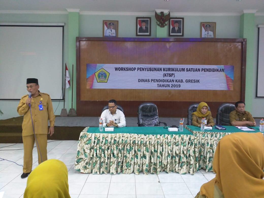 Workshop ini mengundang narasumber dari Widya Iswara LPMP Propinsi Jawa Timur.Kepala Dinas Pendidikan Kabupaten Gresik, MAHIN, S.Pd., MM, langsung membuka kegiatan ini. Beliau menyampaikan pentingnya peningkatan kompetensi dan keprofesionalan guru dalam menyusun kurikulum pembelajaran untuk meningkatkan mutu pendidikan.