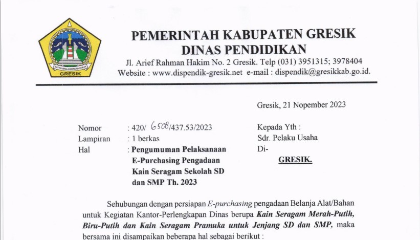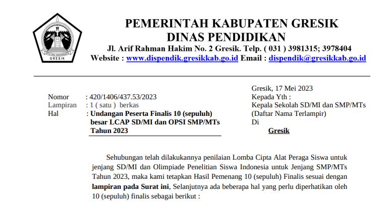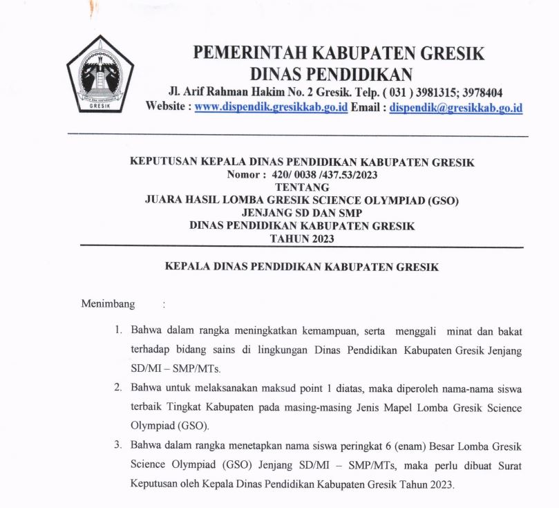 Continue Reading...Pendaftaran Penerimaan Peserta Didik Baru tingkat TK, SD dan SMP Negeri di Kabupaten Gresik Tahun