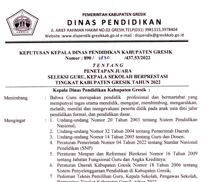 Sabtu (27/08/2022) Dalam rangka meningkatkan kualitas pendidikan, Dinas Pendidikan Kabupaten Gresik