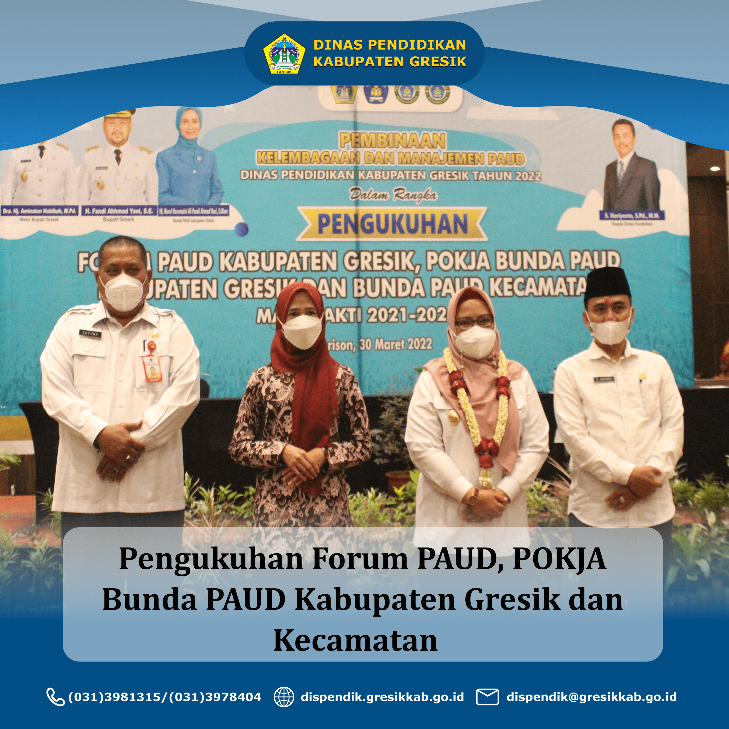 Rabu, 30 Maret 2022 Dinas Pendidikan Kab. Gresik melaksanakan kegiatan Pengukuhan Forum PAUD, Pokja